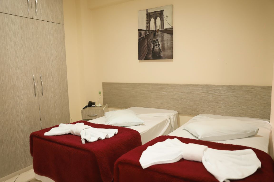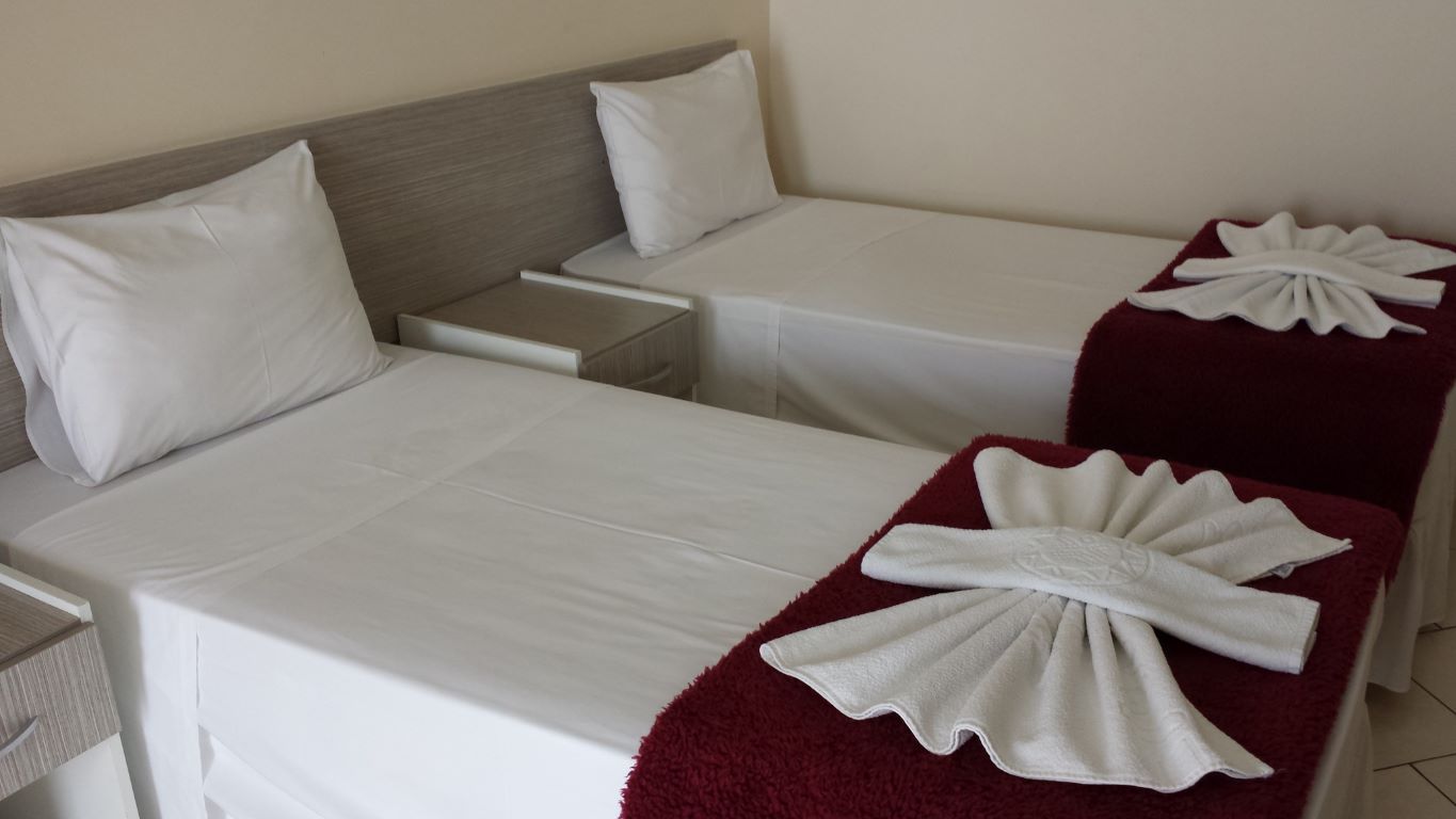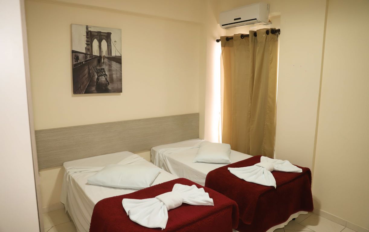 Apartamento com ar condicionado, tv LCD 32″, frigobar, telefone, ducha, secador de cabelo, cama box, ferro de passar e internet WI-FI.